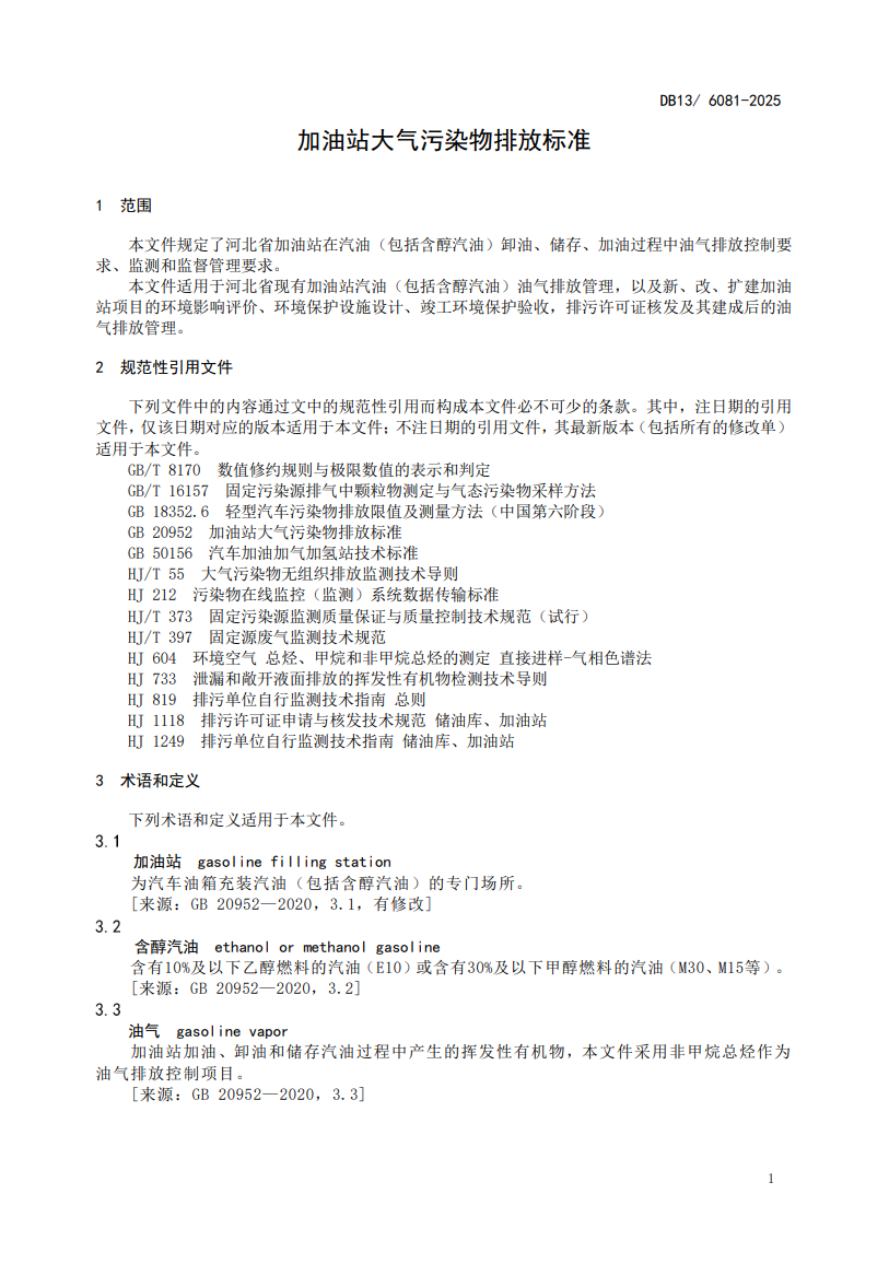 河北省地标-加油站大气污染物排放标准